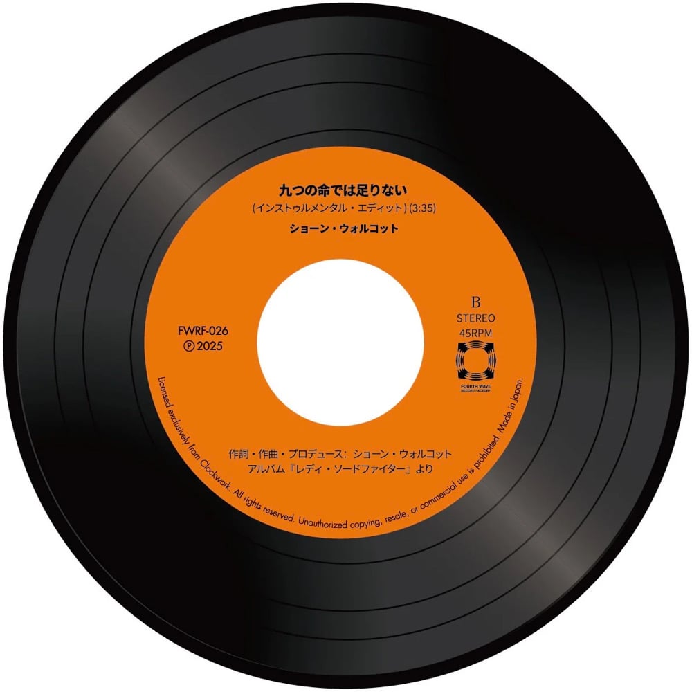 Seattle’s visionary producer Sean Wolcott has crafted one of his finest works yet: Lady Swordfighter, an imagined Japanese film soundtrack that has already become legendary among Wamono and cinema fans. From this masterpiece comes the haunting ballad “Nine Lives Are Not Enough”, sung in Japanese and now issued for the first time as a Japan limited-edition 7-inch from Fourth Wave Record Factory.